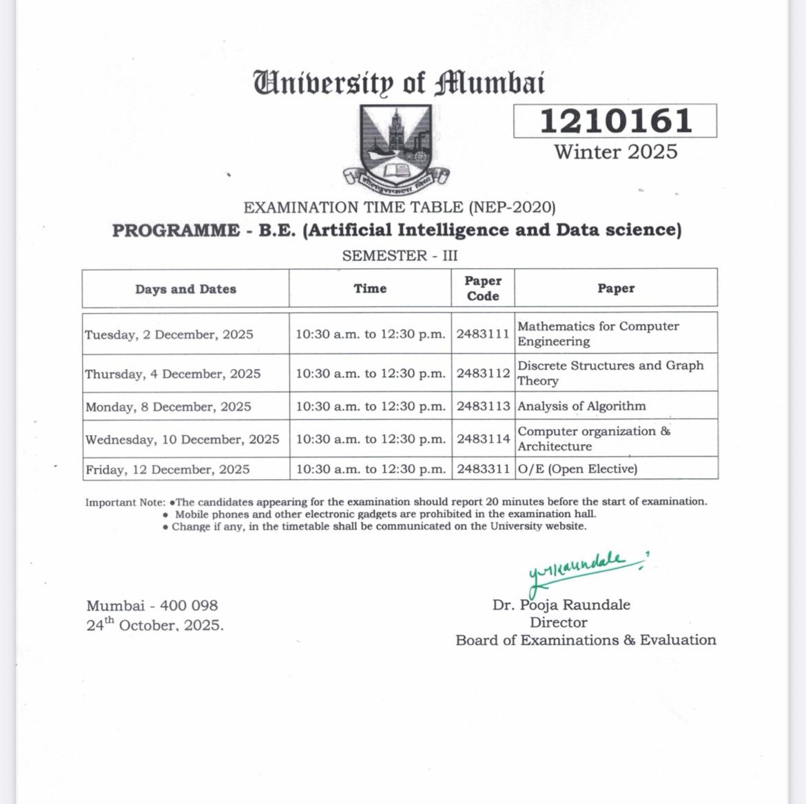 ExaminationResultsExamination NoticesExamination FE SEM I C Scheme (All Branches) FE SEM II NEP (All Branches) SE SEM IV C Scheme (All Branches) SE SEM III C Scheme AI&DS SE SEM III C Scheme Chemical SE SEM III C Scheme Computer SE SEM III C Scheme EXTC SE SEM III C Scheme IT SE SEM III NEP Chemical Nov 2025 SE SEM III NEP EXTC Nov 2025 SE SEM III NEP AI&DS Nov 2025 SE SEM III NEP Computer Nov 2025 SE SEM III NEP IT Nov 2025 FE SEM II NEP (All Branches) Nov 2025 BE SEM VII EXTC Nov 2025 BE SEM VII AI&DS Nov 2025 BE SEM VII IT Nov 2025 BE SEM VII Chemical Nov 2025 BE SEM VII Computer Nov 2025 TE Sem V AI&DS Nov 2025 TE Sem V IT Nov 2025 TE Sem V Computer Nov 2025 TE Sem V EXTC Nov 2025 TE Sem V Chemical Nov 2025 TE SEM VI (All Branches) Nov 2025 (KT) Results SEM IV CHEM May 2025 SEM VI CHEM May 2025 SEM III CHEM May 2025 SEM V CHEM AMS May 2025 SEM V CHEM FE May 2025 SEM IV EXTC May 2025 SEM VI EXTC May 2025 DBMS SEM VI EXTC May 2025 MVLSI SEM III EXTC May 2025 SEM V EXTC May 2025 DSA SEM V EXTC May 2025 DCC SEM IV IT May 2025 SEM VI IT May 2025 SEM III IT May 2025 SEM V IT May 2025 SEM IV Computer May 2025 SEM VI Computer May 2025 SEM III Computer May 2025 SEM V Computer May 2025 SEM IV AI&DS May 2025 SEM VI AI&DS May 2025 SEM III AI&DS May 2025 SEM V AI&DS May 2025 SEM II Chemical May 2025 SEM II Computer May 2025 SEM II EXTC May 2025 SEM II IT May 2025 SEM II AI&DS May 2025 SEM I IT May 2025 SEM I EXTC May 2025 SEM I CHEMICAL May 2025 SEM I AI&DS May 2025 SEM VIII CHEMICAL May 2025 SEM VIII Computer May 2025 SEM VIII EXTC May 2025 SEM VIII AI&DS May 2025 SEM VIII IT May 2025 Examination Notices Center-Based Examination Circular – Winter 2025 Notice for Sem III (Examination forms for Regular Students) ATKT Notice (All Branches) Notice for SE (All Branches) FE SEM II (All Branches) ‘C’ Scheme Reval Notice