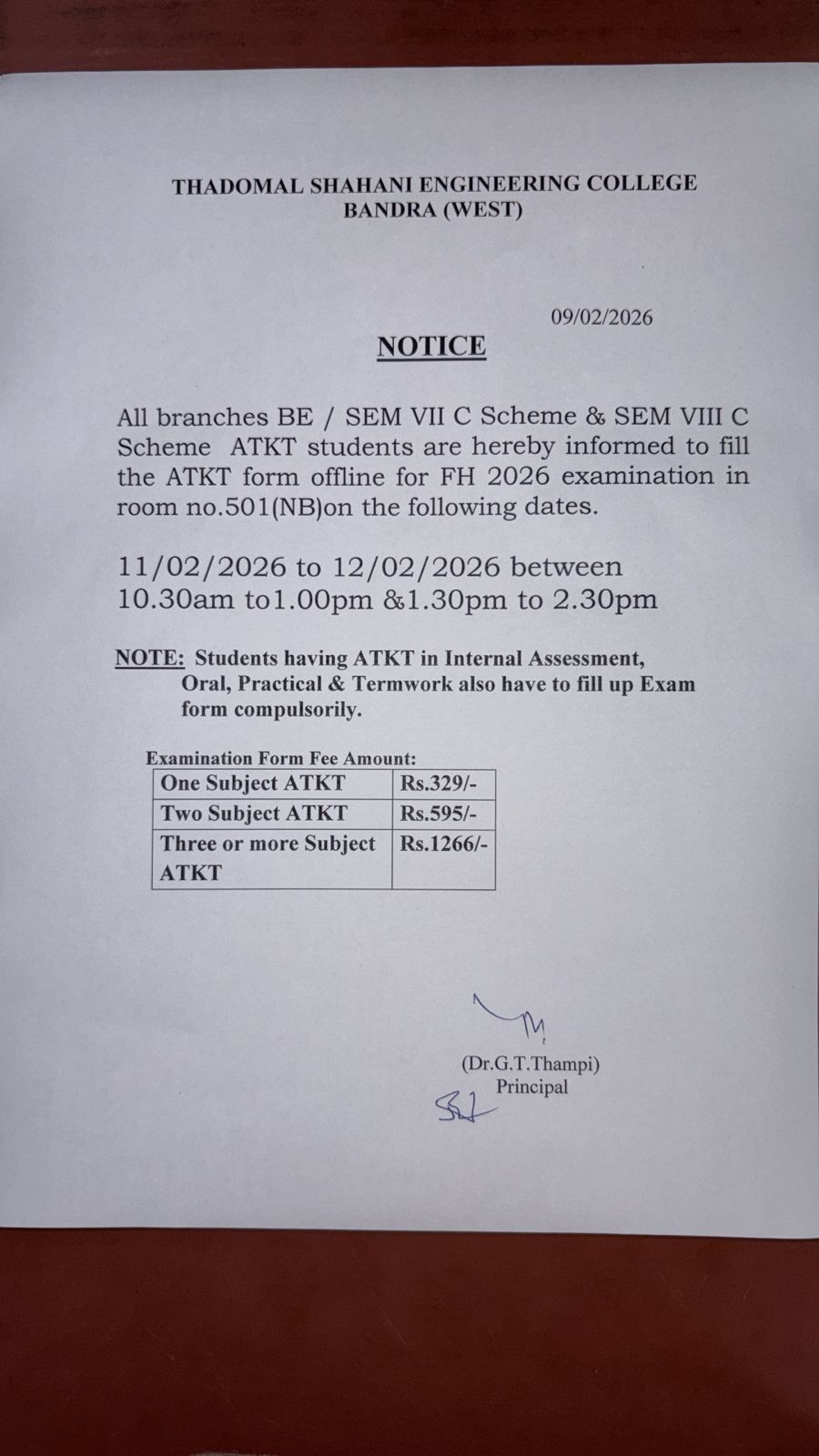 BE SEM VII and SEM VIII C Scheme ATKT Notice