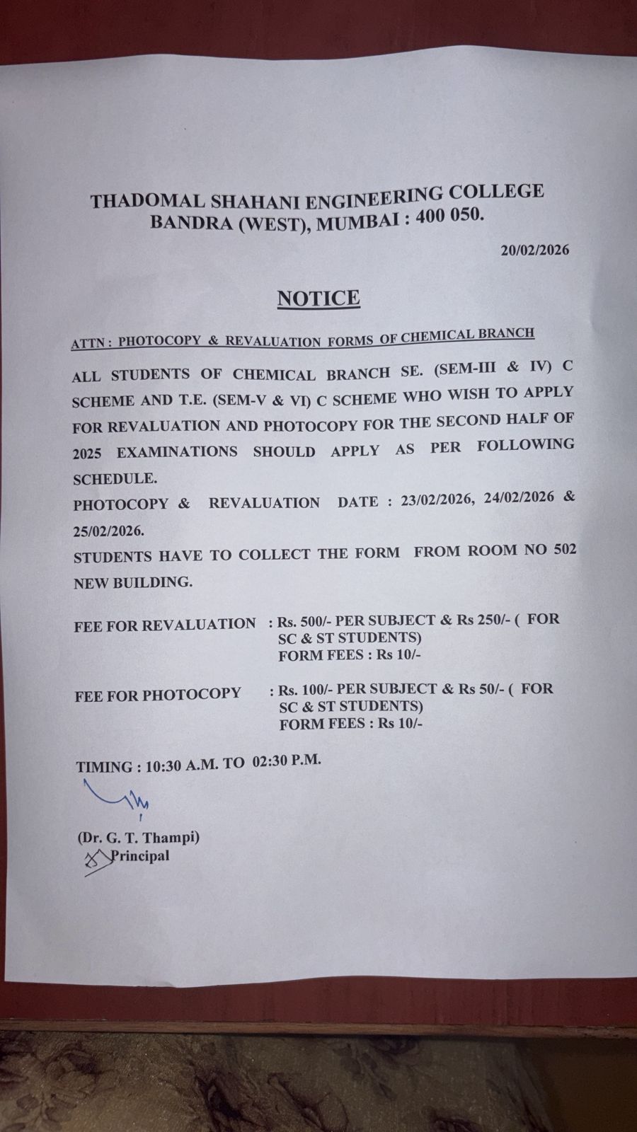 REVALUATION and PHOTOCOPY Notice for Chemical students