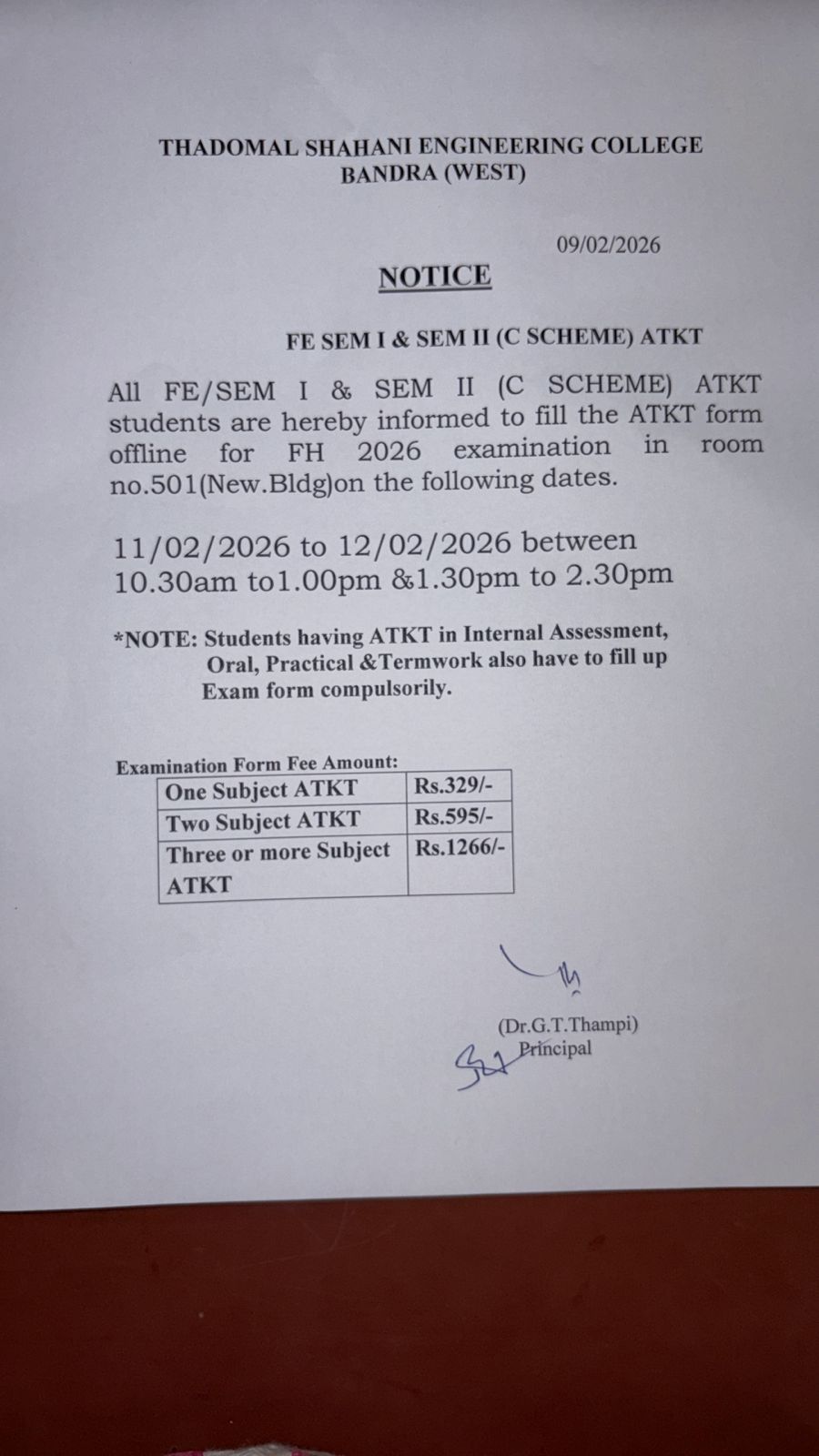 FE SEM I and SEM II ATKT Notice