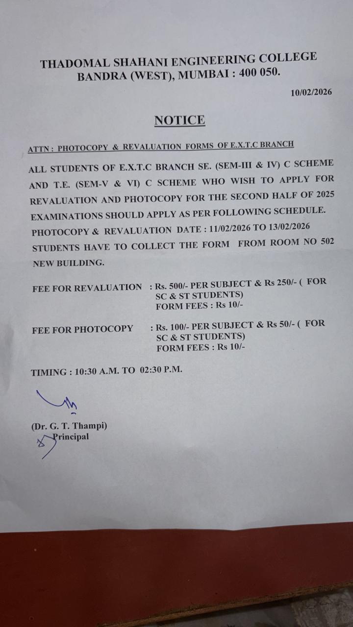 Revaluation and Photocopy Notice for EXTC students